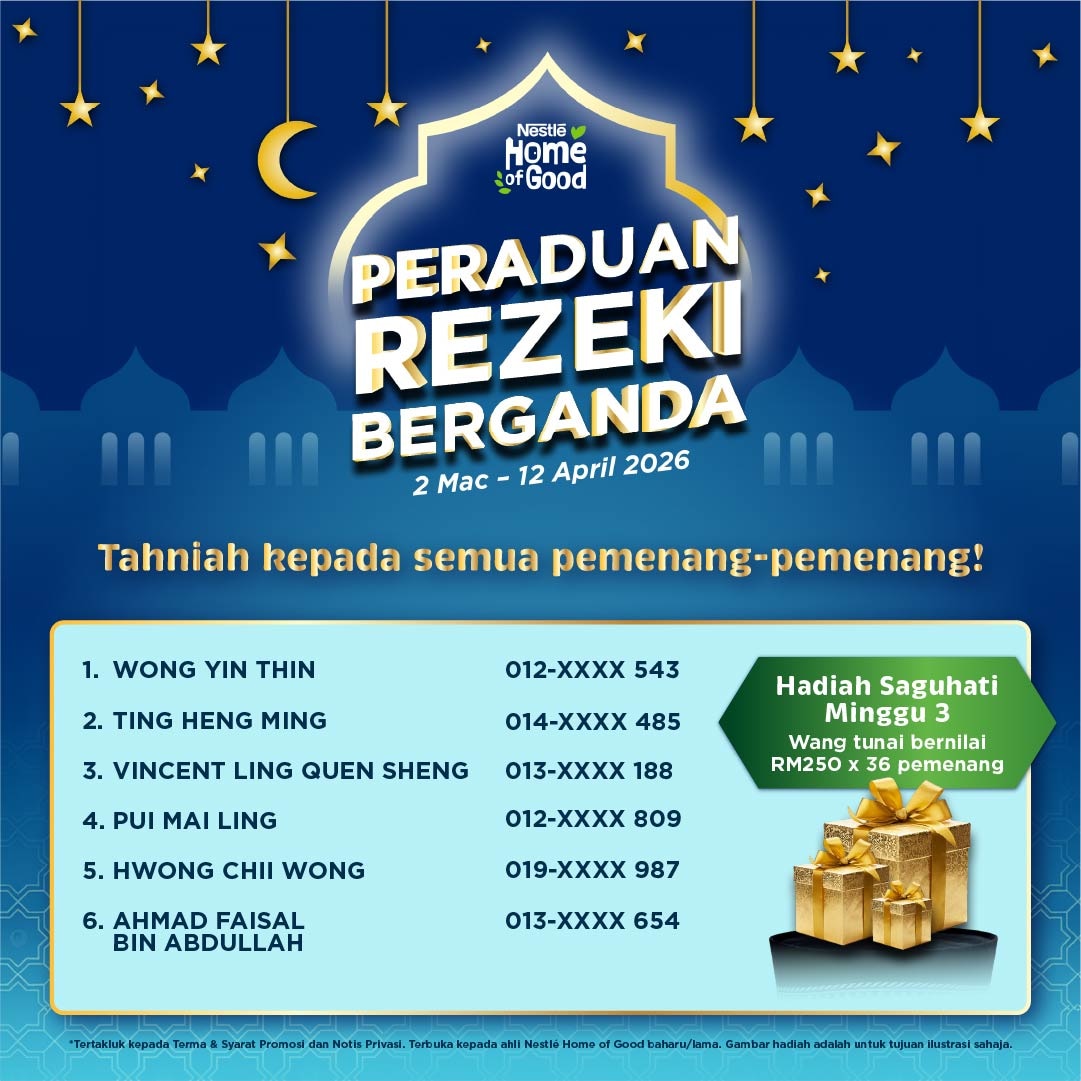 Beli produk NESTLÉ yang terlibat bernilai minimum RM10 dalam satu resit sepanjang tempoh peraduan. (Maksimum RM150 bagi setiap resit = 15 penyertaan)